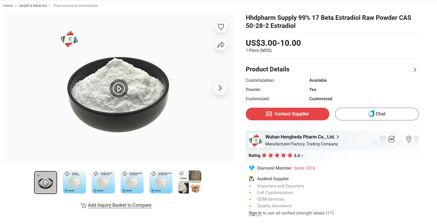 - 17-beta estradiol (CAS 50-28-2), you may also use estradiol hemihydrate (CAS 35380-71-3)